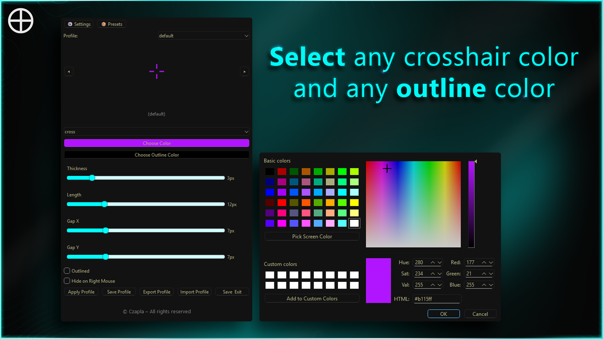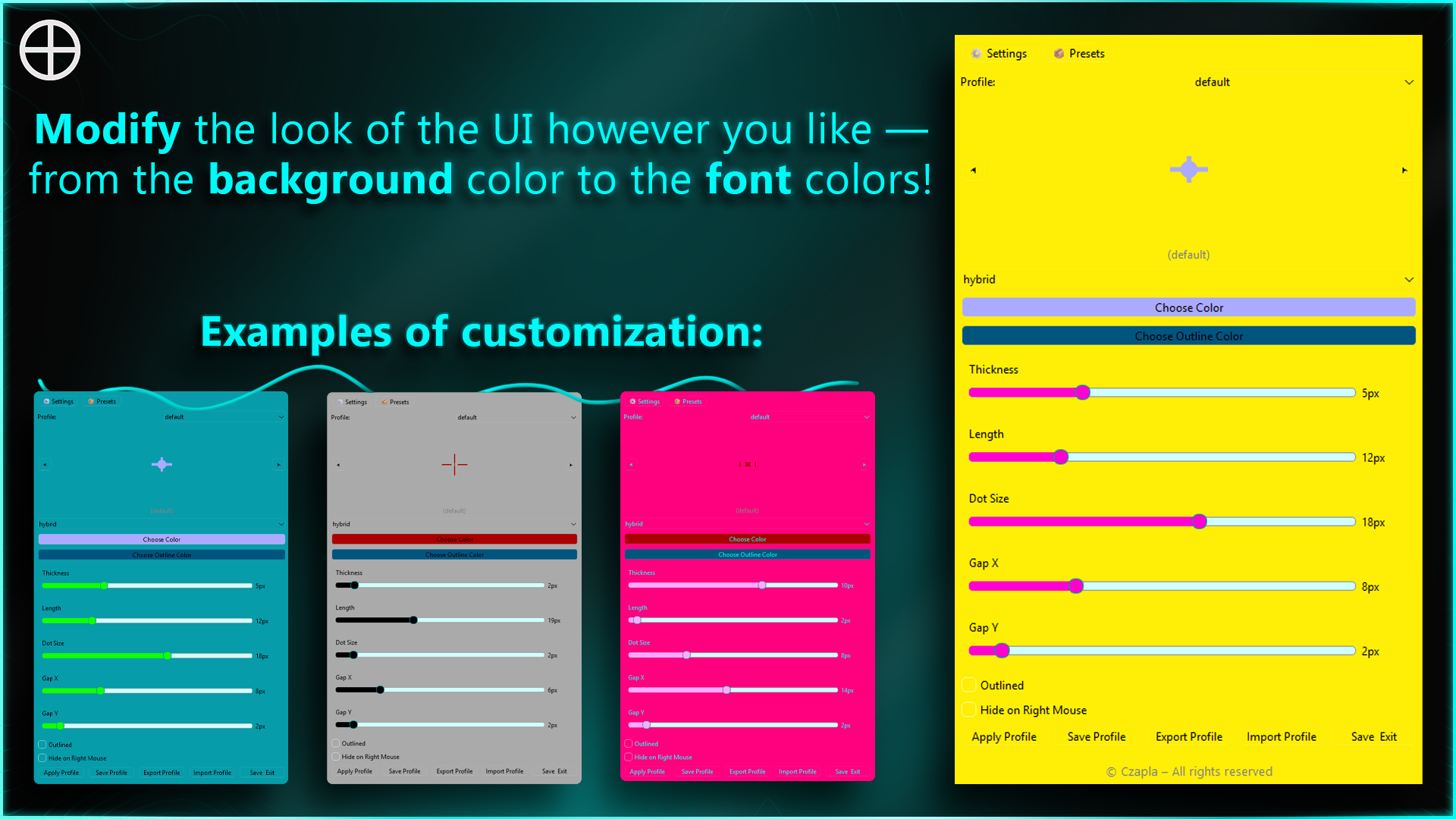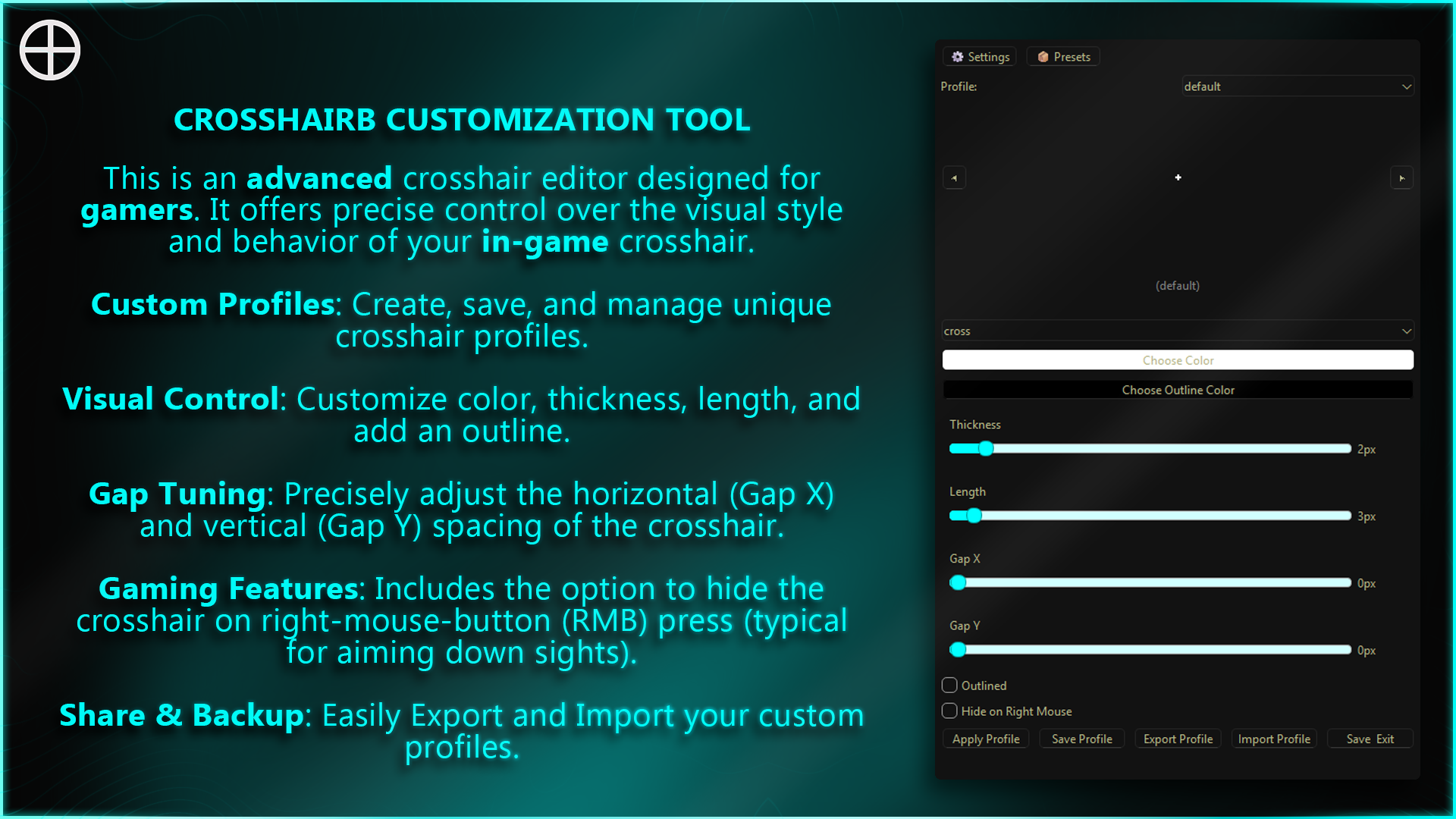 - Profiles & Themes: Save, load, and rename multiple profiles for different games or resolutions.