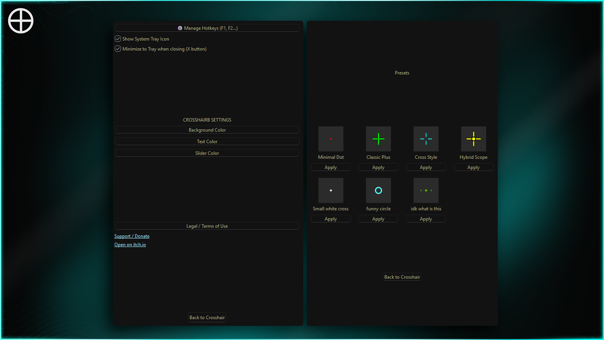 - INSTANT, GLOBAL HOTKEYS: Stop fumbling in menus. Assign global hotkeys (F1, F2, etc.) to your favorite profiles to switch crosshairs instantly and silently during gameplay—perfect for swapping styles between AWP and Rifle rounds.